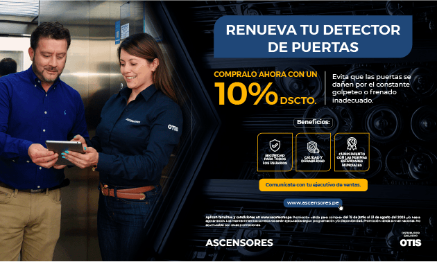 Aplican términos y condiciones en www.ascensores.pe Promoción válida para comprar del 15 de junio al 31 de agosto del 2025 y/o hasta agotar stock. Los mantenimientos correctivos serán ejecutados según programación y/o disponibilidad. Promoción válida a nivel nacional. No acumulable con otras promociones.